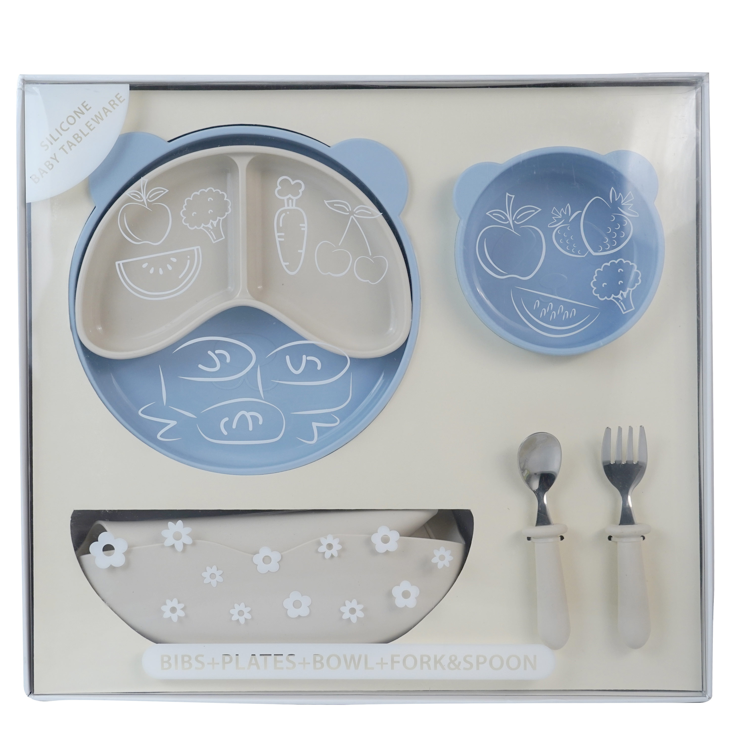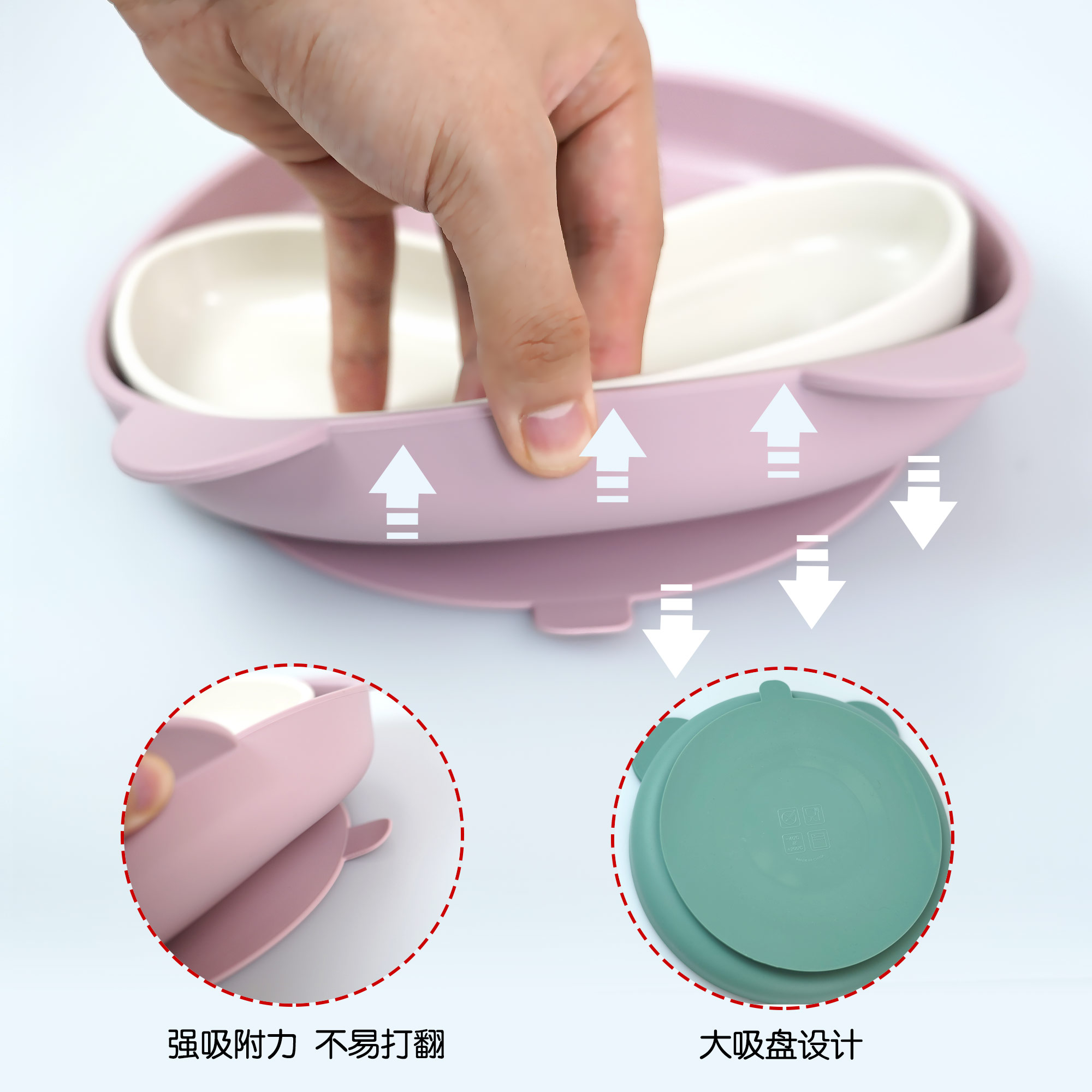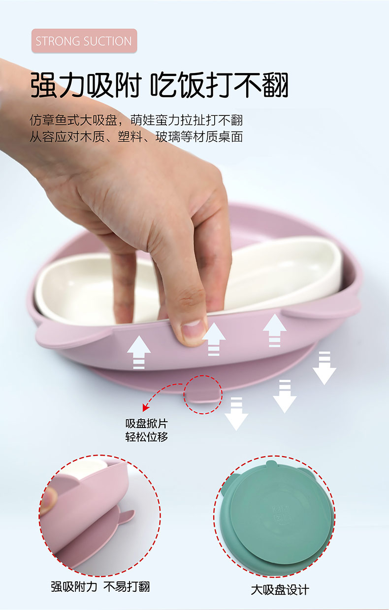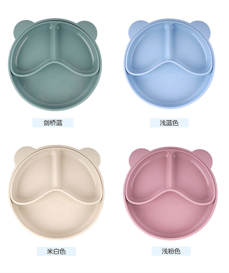 寶寶熱銷餐盤可拆分食品級硅膠分隔盤輔食吸盤三格兒童硅膠餐盤