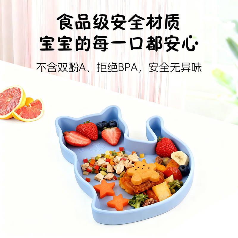 硅膠卡通小貓吸盤餐盤