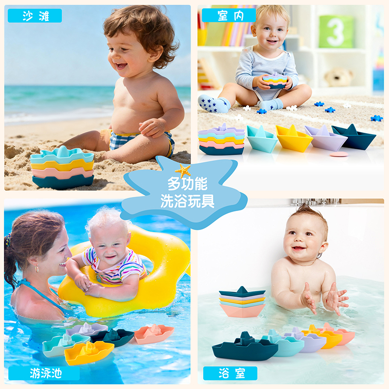 亞馬遜跨境兒童沐浴可愛小船玩具創(chuàng)意戲水玩具寶寶硅膠洗澡玩具