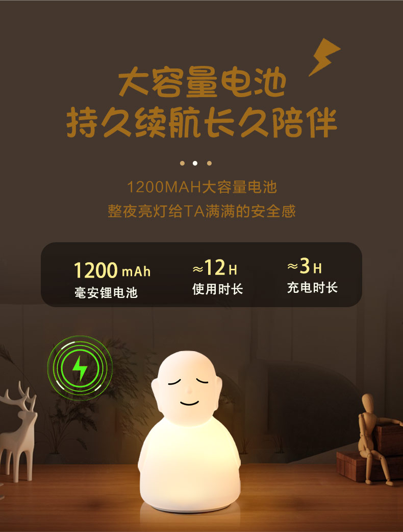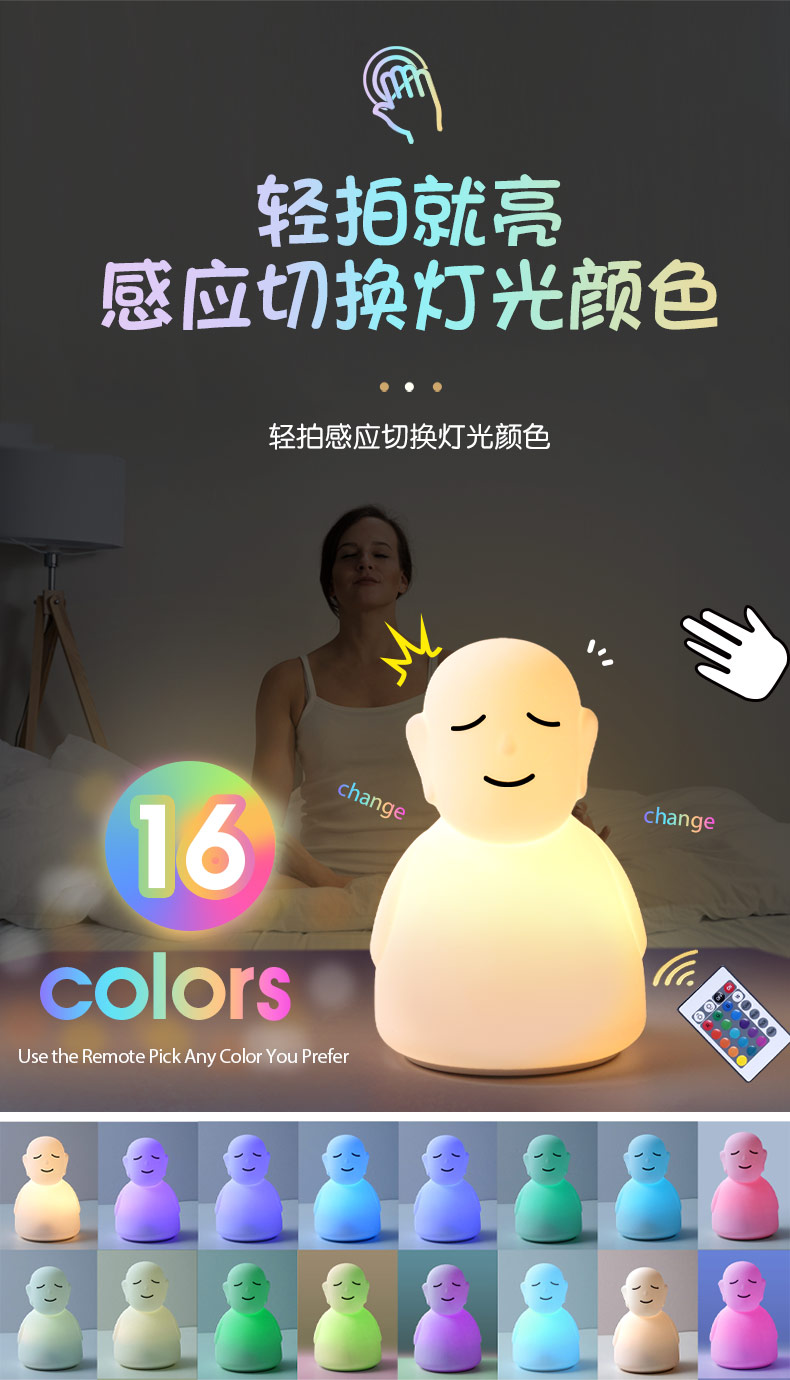 跨境LED硅膠拍拍佛主小夜燈夜間寶寶安撫睡拍拍燈遙控器感應照明
