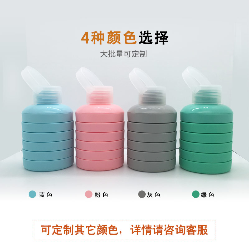 便攜式硅膠折疊水瓶采用食品級硅膠材質(zhì),符合食品級標(biāo)準(zhǔn),符合相關(guān)質(zhì)檢標(biāo)準(zhǔn),這款運(yùn)動折疊水瓶是本公司2021年最新研發(fā)生產(chǎn)的硅膠制品,顏色目前只生產(chǎn)了4種,分別為灰色,綠色,藍(lán)色,粉紅色,瓶蓋為白透明色,也可以根據(jù)要求來定制各種材質(zhì)或者是不同形狀的瓶蓋顏色或者是樣式??裳b熱水,方便旅行攜帶,具有耐摔,耐高溫,柔軟等特點(diǎn)。