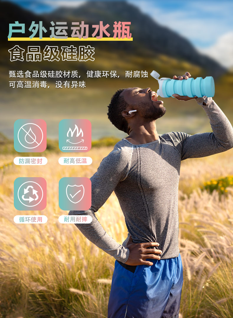 您的位置:首頁 > 產(chǎn)品中心 > 硅膠家居用品 > 折疊水瓶 > 定制高顏值水壺杯水瓶戶外騎行水壺旅行健身運動水杯便攜折疊水壺